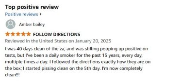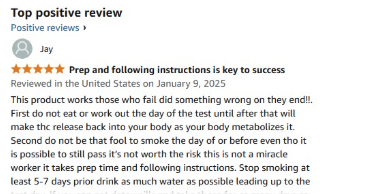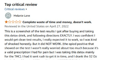 However, this customer failed to pass the test using the detox drink. It’s possible that the problem was caused by combining it with other detox methods.